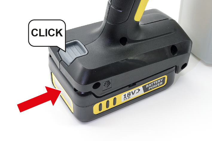 Push the battery pack into the battery mount until it audibly clicks into place, see chapter Inserting the battery pack.