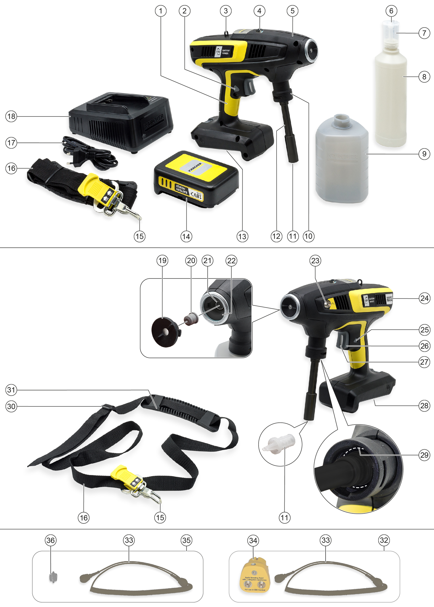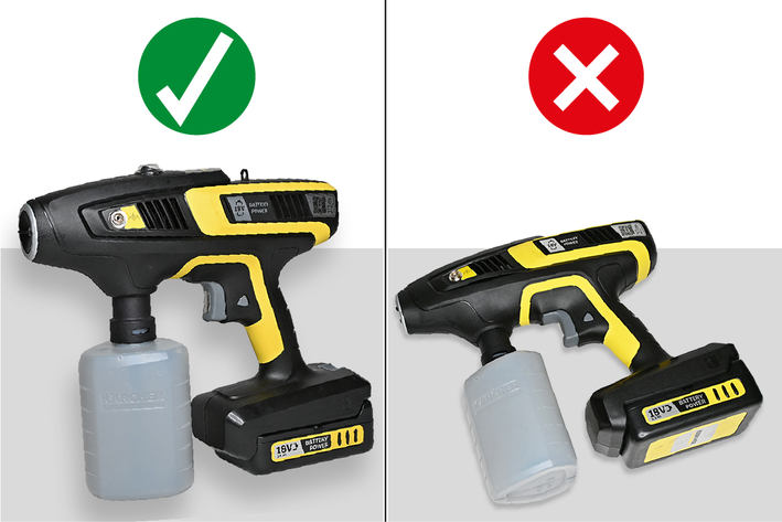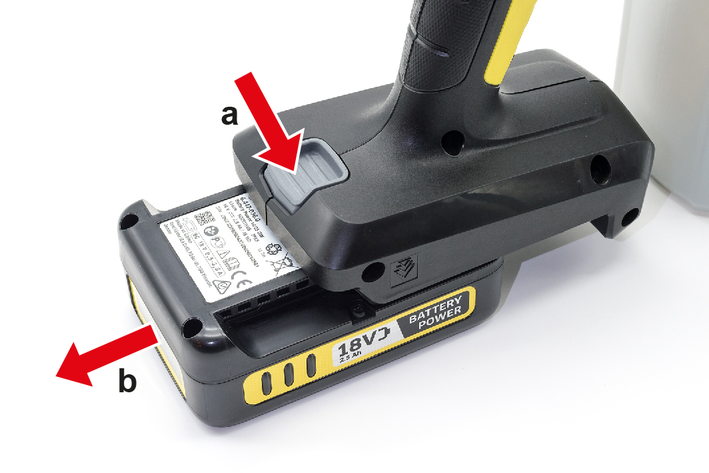 Only use KÄRCHER original battery packs, not non-rechargeable batteries.