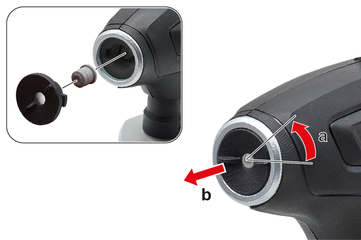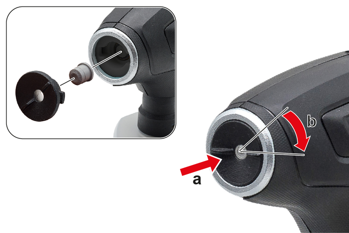 Push the charged battery pack into the battery mount until it audibly clicks into place, see chapter Inserting the battery pack.