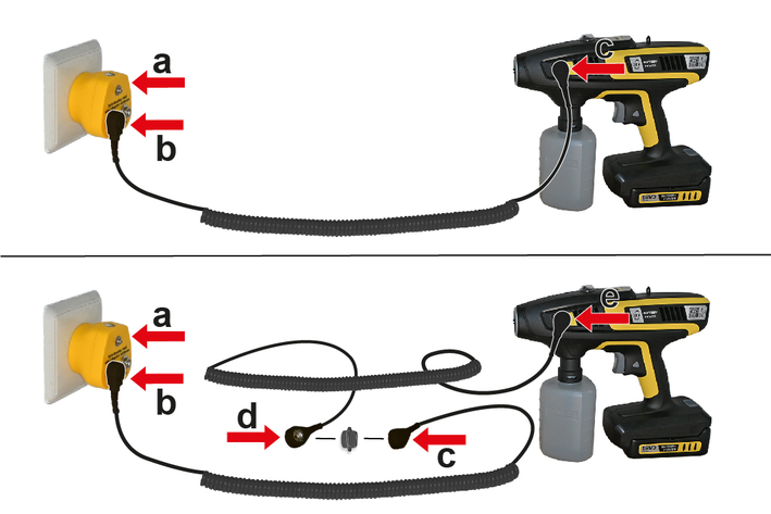 Danger of injury from shock reaction to electrostatic discharge from the operator. Expect noticeable, unpleasant charge transfers when the electrostatic charging function on the device is switched on. Always ensure that you have a secure footing.