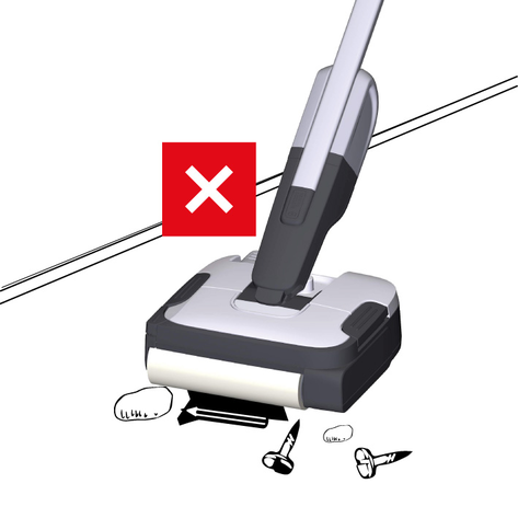 Before starting work and storing the device, remove objects such as shards, pebbles, screws or toy parts from the floor.