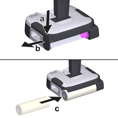 Pay attention to the colour coding on the inner side of the roller and on the roller holder on the device (e.g. purple to purple).