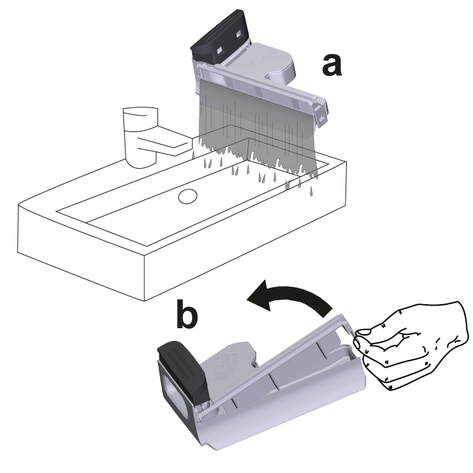![]() | DANGERRisk of electric shock The device contains electrical components. Never clean the device under running water. Do not immerse the device in water. |