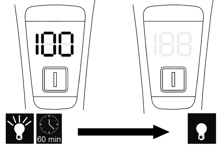 ![]() | When the battery is fully charged, the LED display lights up for 60 minutes and then goes out |