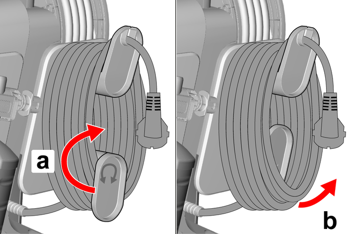 Unwind the high-pressure hose completely and lay it out without knots, loops or twists before operating the device.Pull the high-pressure hose to fully unwind it from the hose reel.