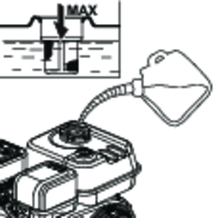 Refill oil (SAE 10 W30 or SAE 15 W40) to the lower edge of the oil filling port.