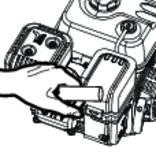 To avoid fire hazard or damage to the engine, the cooling fins and starter rope must be free of grass or other dirt.