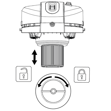 O filtro pode ser desbloqueado e retirado rodando-o na direção do símbolo