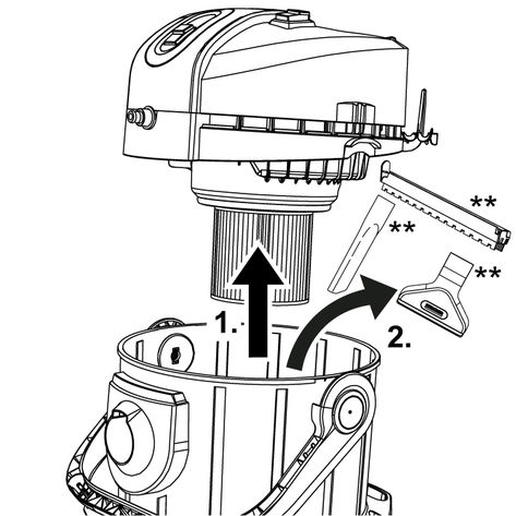 Premir a tecla de desbloqueio e retirar a mangueira de pulverização/aspiração do aparelho.