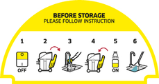 Na base de apoio do aparelho, encontra-se um autocolante que descreve como deve limpar o aparelho antes de o guardar: