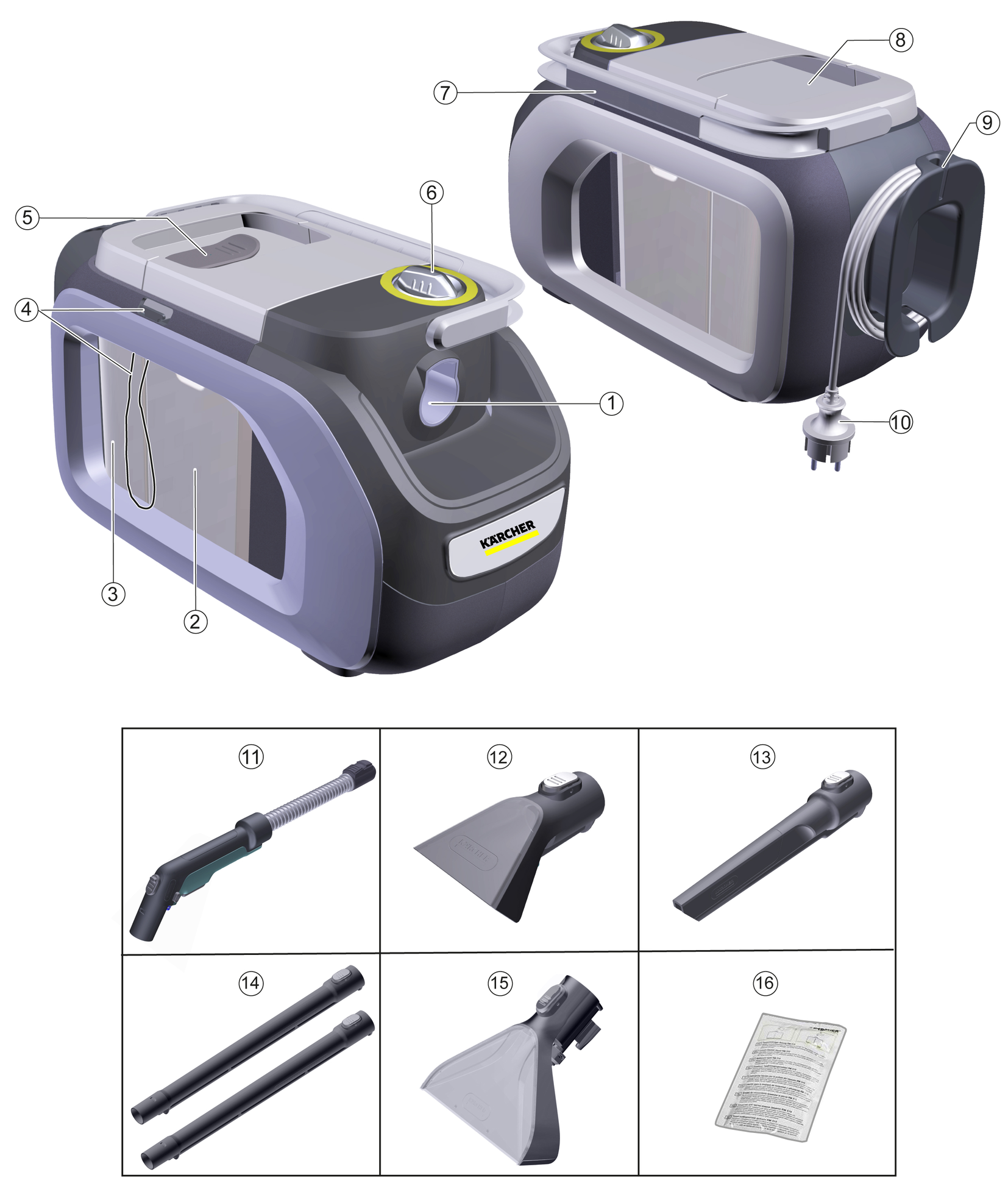 The device is intended for use as a spray extraction cleaner for cleaning car interiors, upholstery textiles and carpets in accordance with the descriptions given in these operating instructions and the safety instructions.