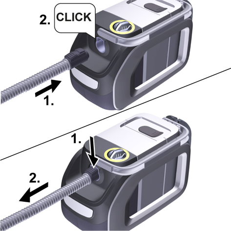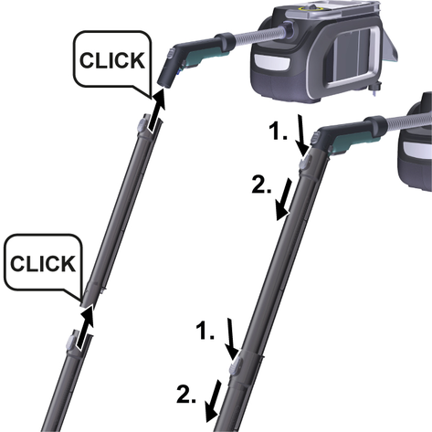 Press the spray suction hose into the suction hose connection on the device until it latches into place.