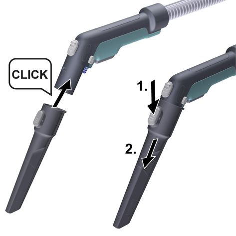 To clean the spray extraction floor nozzle and spray extraction upholstery nozzle, loosen the nozzle holder by turning it and remove it together with the nozzle.