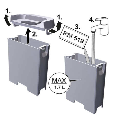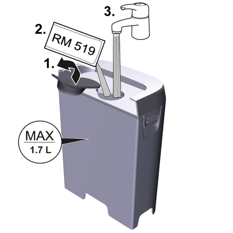 Unlock and remove the tank lid, see chapter Filling the fresh water tank