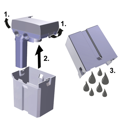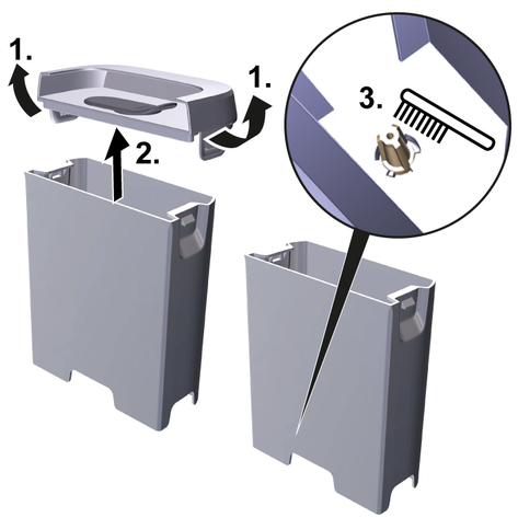 2 grids are fitted to the inside of the waste water tank cover (on the separator). If the grids are wet or dirty, the float may not switch correctly or the device may switch off too early.