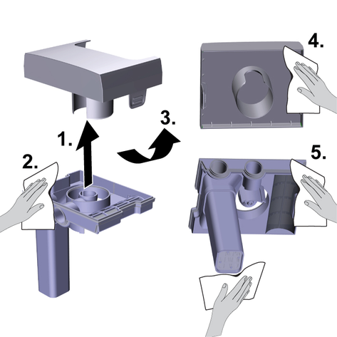 When continuing the cleaning work: Replace the filler cap, making sure that it is firmly seated. Insert the waste water tank down to the bottom of the device.