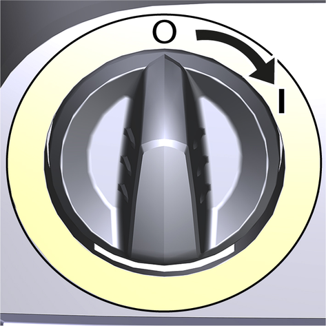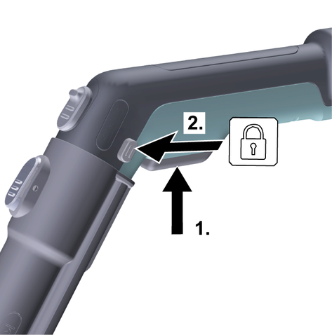 Turn the power switch to position 1 (On) and simultaneously press and hold down the spray lever on the handle.