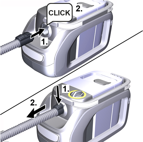 Press the spray/suction hose into the spray/suction hose connection on the device until it latches into place.
