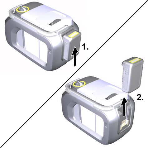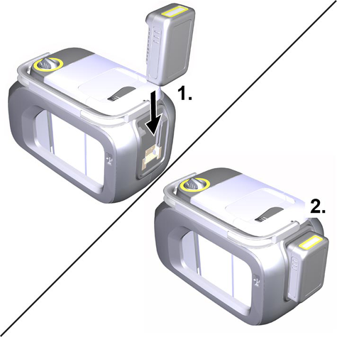 Push the battery pack into the battery pack mount from above until the battery pack latches into place.