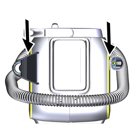 Wrap the suction hose around the device and fasten it to the other accessory holder with the upholstery nozzle.