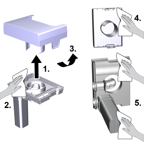 When continuing the cleaning work: Replace the filler cap, making sure that it is firmly seated. Insert the waste water tank down to the bottom of the device.