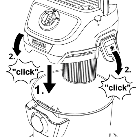 Before starting up, check the foam filter / cartridge filter for damage, and replace it if necessary. Only vacuum with a dry foam filter / cartridge filter.Depending on the equipment variant, a foam filter or a cartridge filter is included.