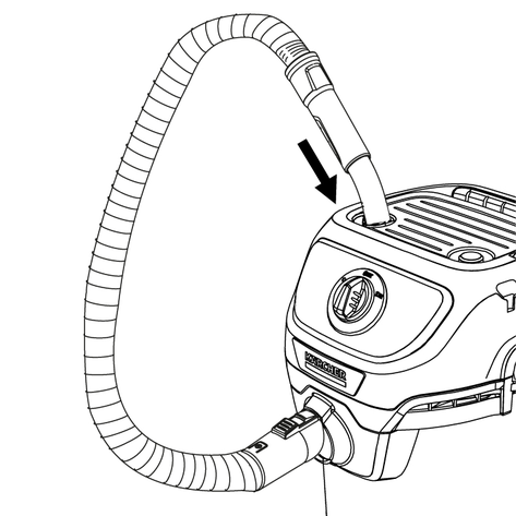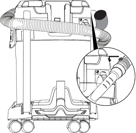 The suction hose can be wrapped around the device head and attached to the device head with the help of the hose collar.