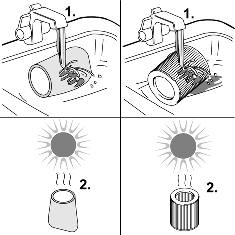 Allow the foam filter / cartridge filter to dry completely before using it again.
