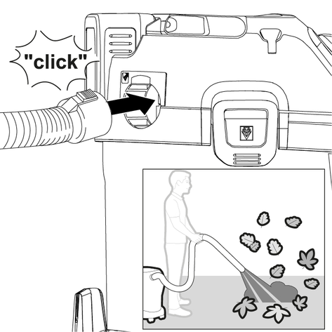 Insert the suction hose into the blower connection. The blower function is now activated.