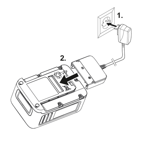 ![]() | Only use the battery pack with the approved chargers. Information on which type of charger/adapter is to be used can be found on the type plate of the charger supplied and/or in the technical data in the operating instructions for the device. |