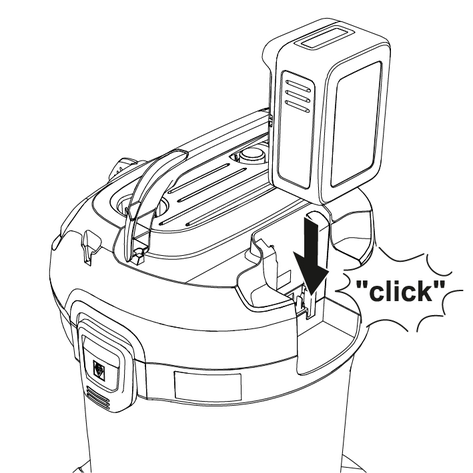 Cartridge filter: Install the filter on the filter basket, turn it towards the symbol