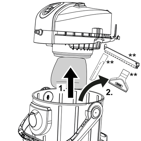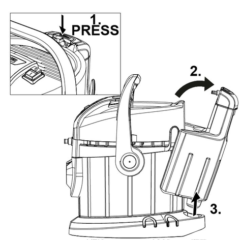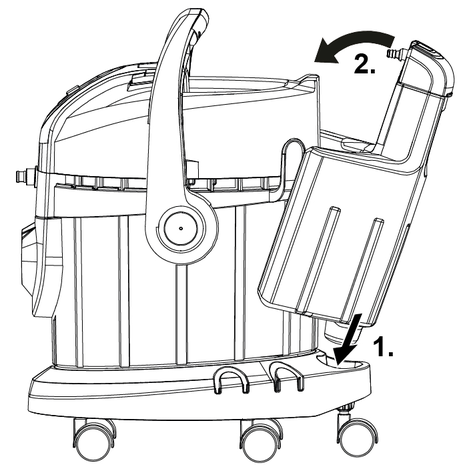 Para retirar a cabeça do aparelho, é necessário retirar primeiro o depósito de água limpa e dobrar a pega de transporte lateral para baixo.