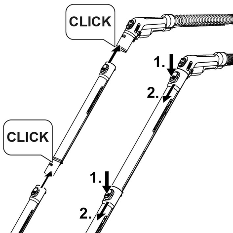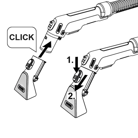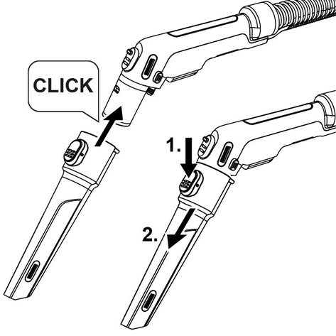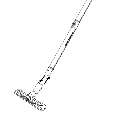 Premir a tecla de desbloqueio e retirar a mangueira de pulverização/aspiração do aparelho.