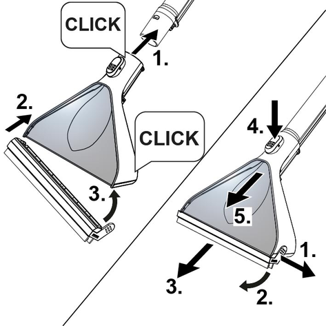 Para limpar o bocal de lavagem de pavimentos e de lavagem de estofos, soltar a fixação do bocal rodando-a e puxá-la para fora juntamente com o bico pulverizador.
