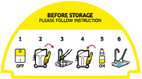 Na base de apoio do aparelho, encontra-se um autocolante que descreve como deve limpar o aparelho antes de o guardar: