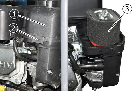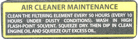Limpar o filtro de ar a cada 50 horas, em ambiente com pó a cada 10 horas (consultar “Conservação e manutenção/limpar o filtro de ar”).