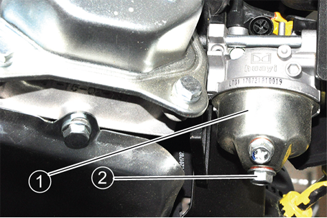 Verificar o vedante entre o recipiente de decantação e o carburador.
