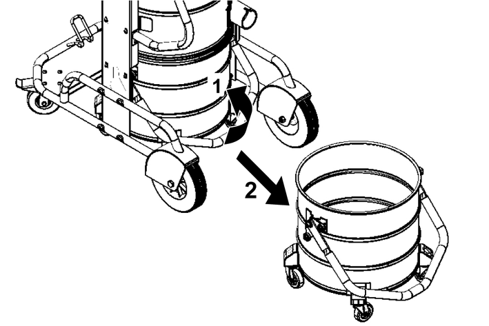 The dirt receptacle can be lifted by crane at the handle. The maximum load for transport by crane is 50 kg.
