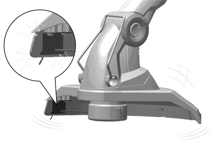Danger of injury. The blade on the protective cover for shortening the cutting string is very sharp and you must avoid touching this, especially when cleaning the device.