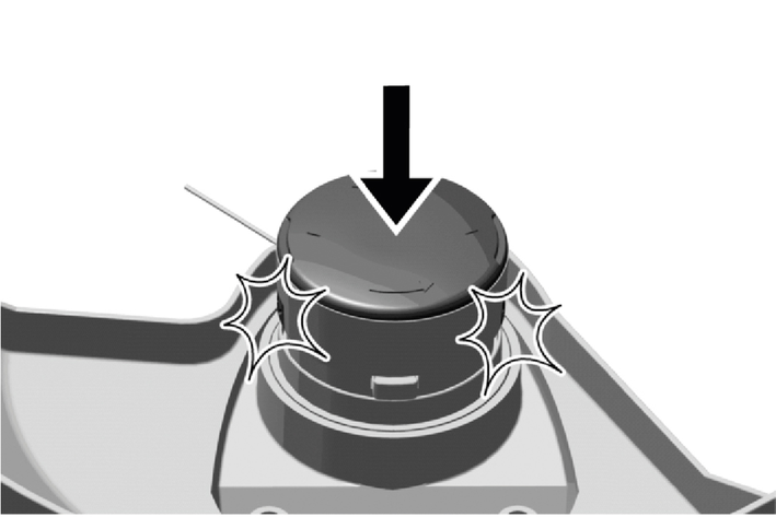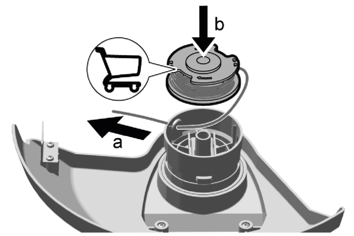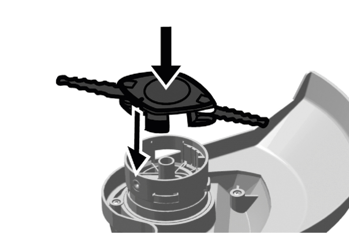 Fit the string reel cover in the support. Take care to ensure that the string reel cover audibly latches into place.