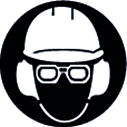 Wear full eye protection and hearing protection, strong and sturdy gloves and head protection when operating the device. Wear a face mask when the work is dusty.