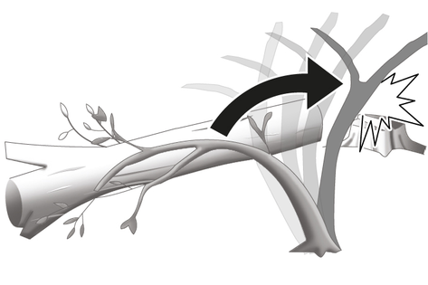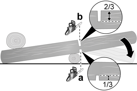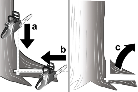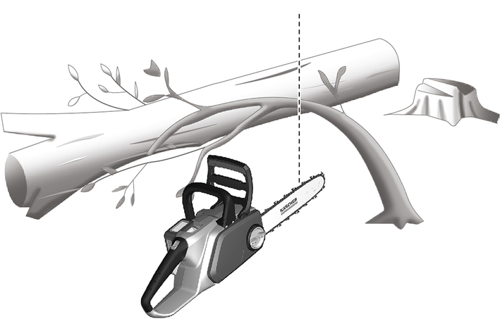 When cutting a limb that is under tension be alert for spring back. When the tension in the wood fibres is released, the spring loaded limb may strike the operator and/or throw the chain saw out of control.