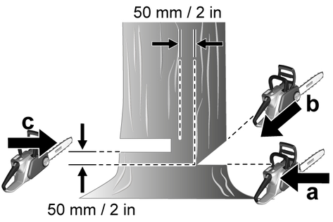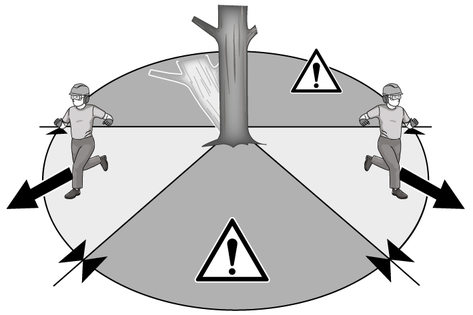 You need to be alert at all times and be in control of your workplace when working with the chainsaw. The size of the workspace depends on the task to be performed and the size of the tree or work piece. Felling a tree requires a larger workspace than e.g. trimming.