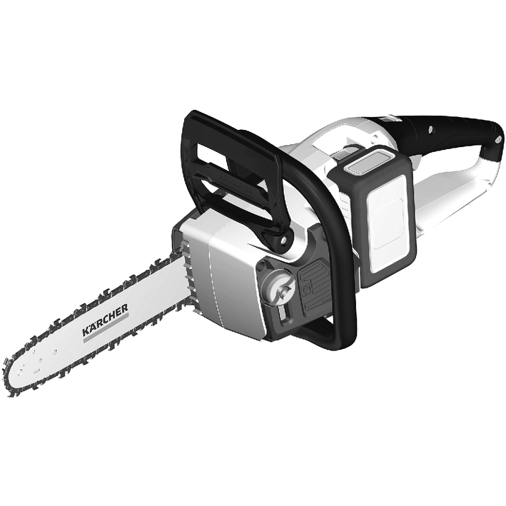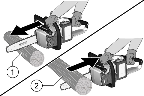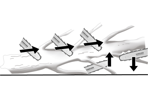 Kärcher recommends sawing tree trunks on a sawhorse during first use.