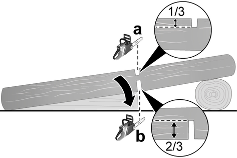 Do not stop the chainsaw while sawing. Let the saw run until it has finished the saw cut.