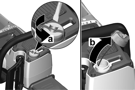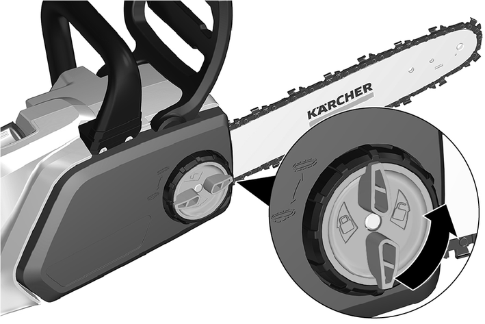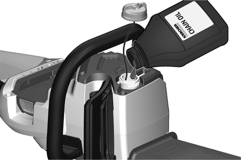 Check the filling level of the chain oil, top up the chain oil if necessary (see Chapter Filling the chain oil tank).