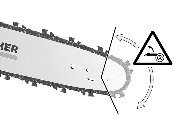 Follow the manufacturer’s sharpening and maintenance instructions for the saw chain. Decreasing the depth gauge height can lead to increased kickback.