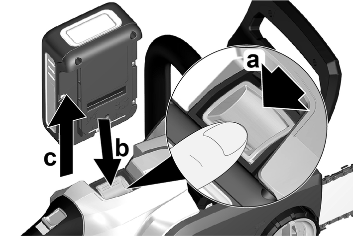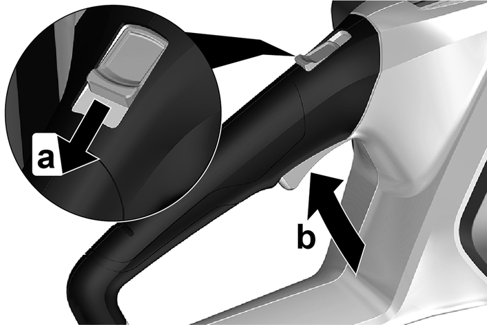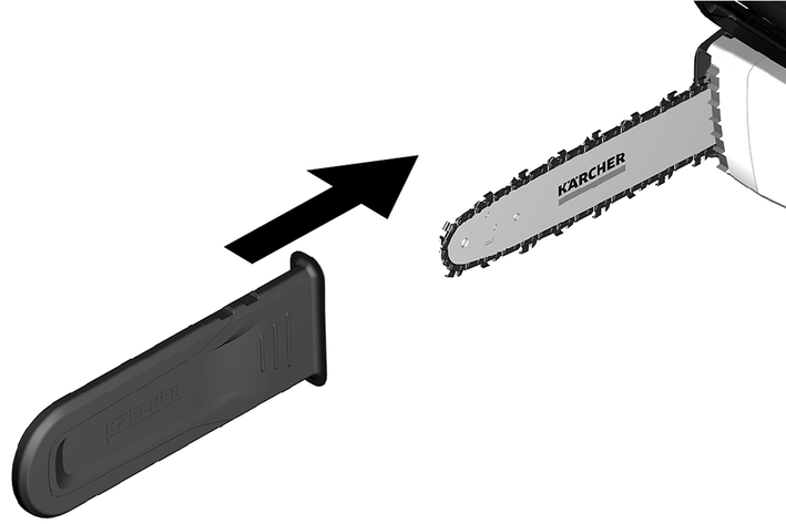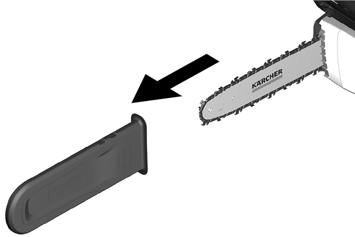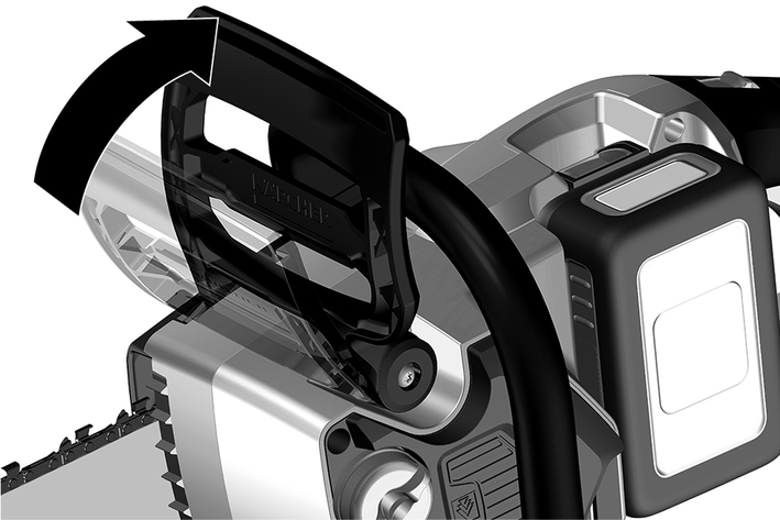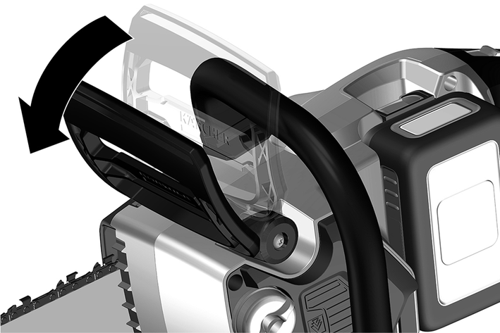 While the device is running, turn your hand on the front handle so that the hand guard/chain brake lever is pressed towards the guide rail with the back of your hand.