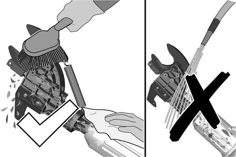 Clippings and other material can get stuck between the jaw and blade. Keep the device clean of clippings and other material.