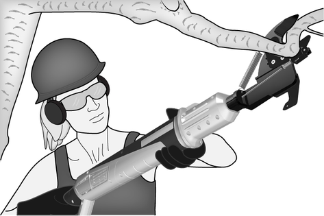 Ensure a firm footing, a clean workplace and plan a retreat path from falling branches before using the device.